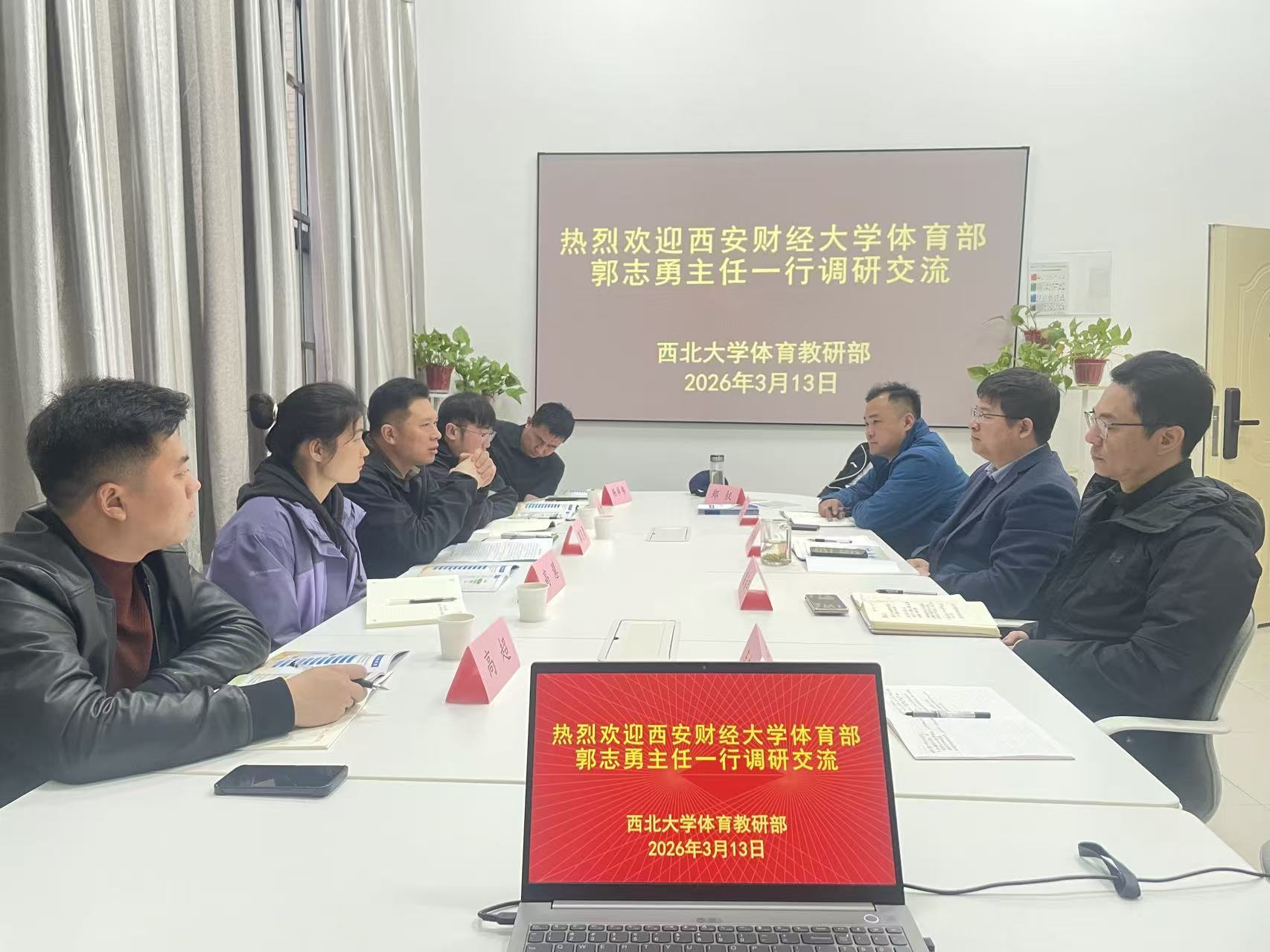 3月13日,西安财经大学体育教学部主任郭志勇一行莅临我校进行体育工作调研与交流。我校体育教研部主任任超学,副主任殷春宇、郝锐、石金龙,办公室主任车吉宁,阳光体育负责人郑权亲临会议,与来访团队深入探讨了高等学校体育教育事业高质量发展的诸多议题。
